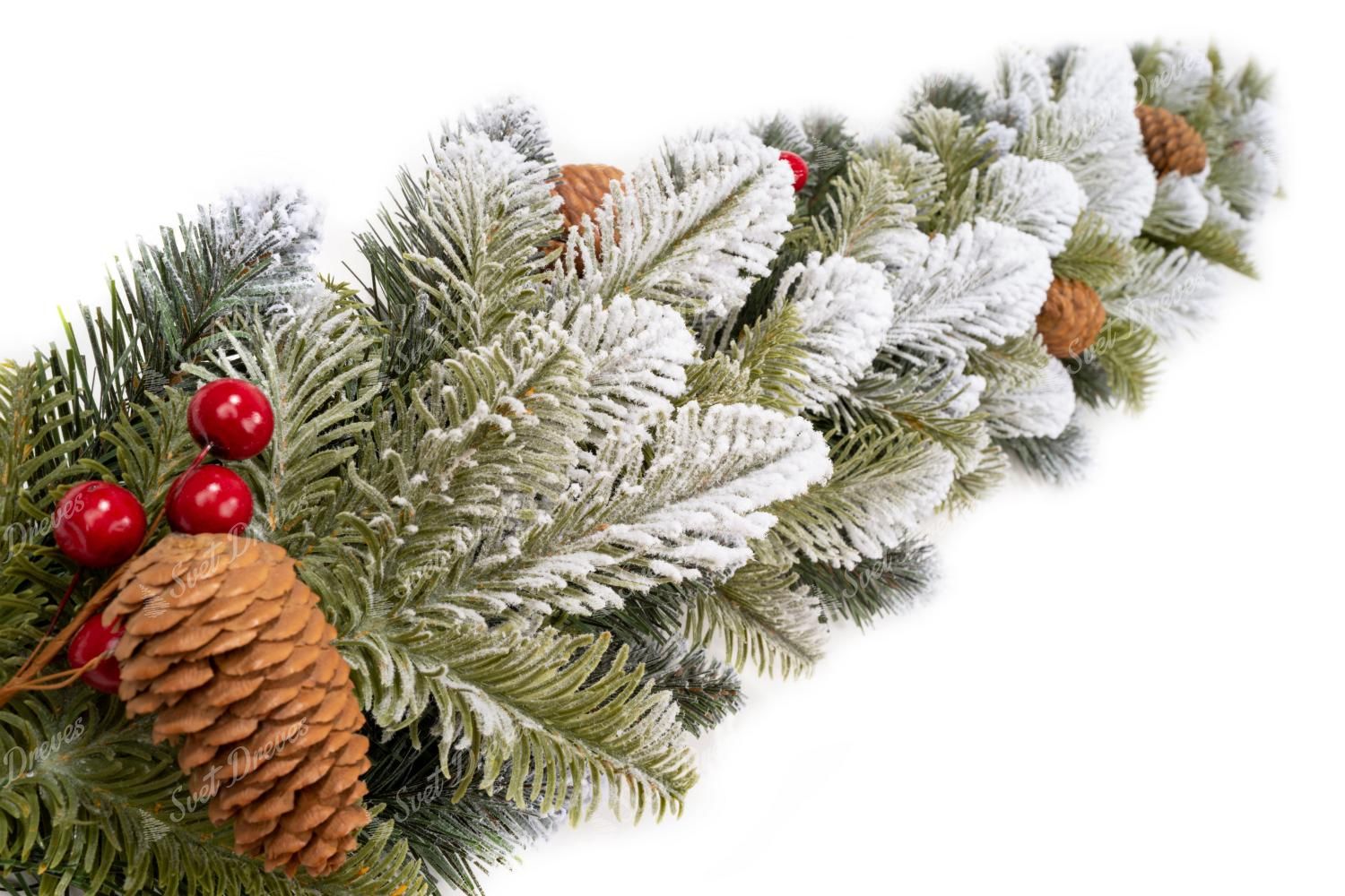 Okrasite svoj dom s čudovito tradicionalno girlando 3D zasneženo jelko, ki je nastala po navdihu našega istoimenskega božičnega drevesa. Celotna girlanda je v celoti sestavljena iz 3D vejic, ki so na koncih prekrite z umetnim snegom. 3D iglice dopolnjujejo tudi snežni storži in plodovi, kar daje girlandi čudovit tradicionalni videz.