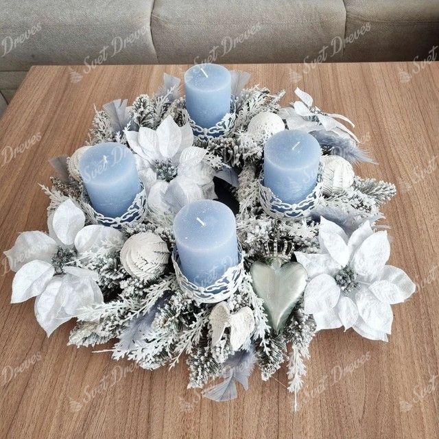 Božični venec Bela Smreka je povsem snežno bel božični venec, ki popolnoma prikliče zimsko vzdušje v vaš dom. Sneg na vejiah je nanašani po najnovejših tehnologijah, zato se popolnoma drži in ne odpade. Venec ima premer 50 cm in je dostavljen že razstavljen.