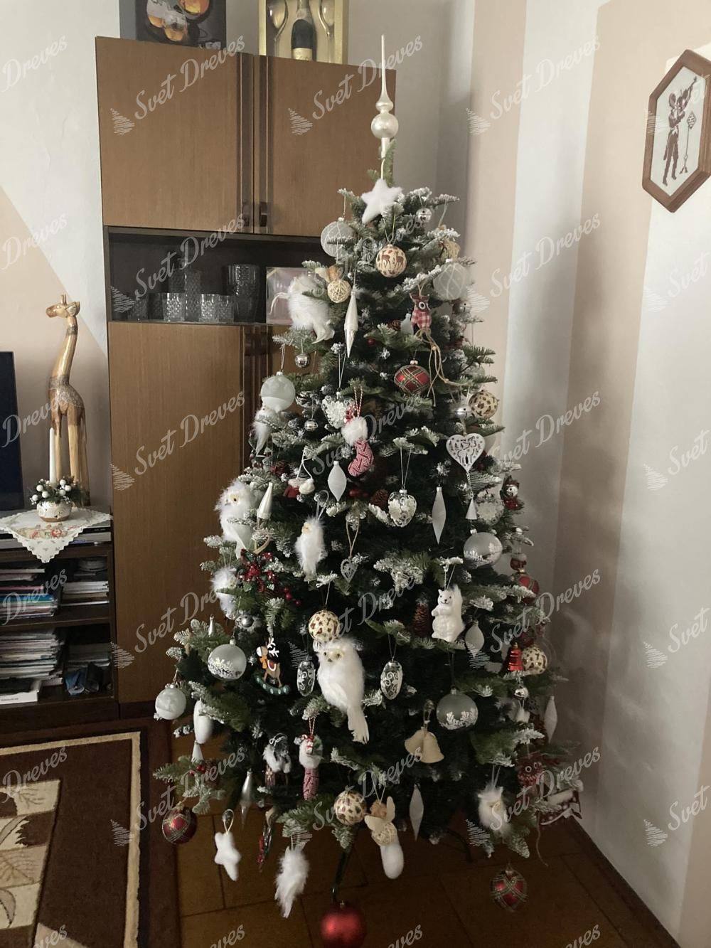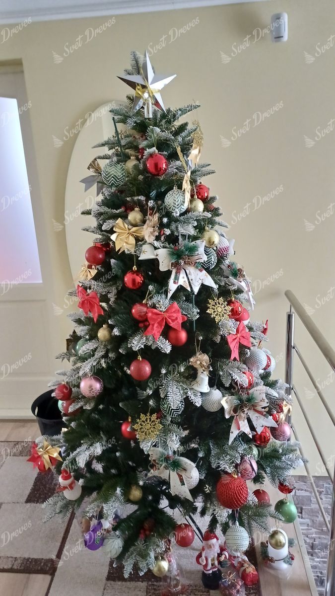 Poleg 3d igličja drevo dopolnjuje še klasično PVC igličje, ki je na koncih tudi zasneženo in tako odlično posnemaj živo zasneženo drevo. Kakovostna železna konstrukcija in stabilno železno stojalo sta del paketa.