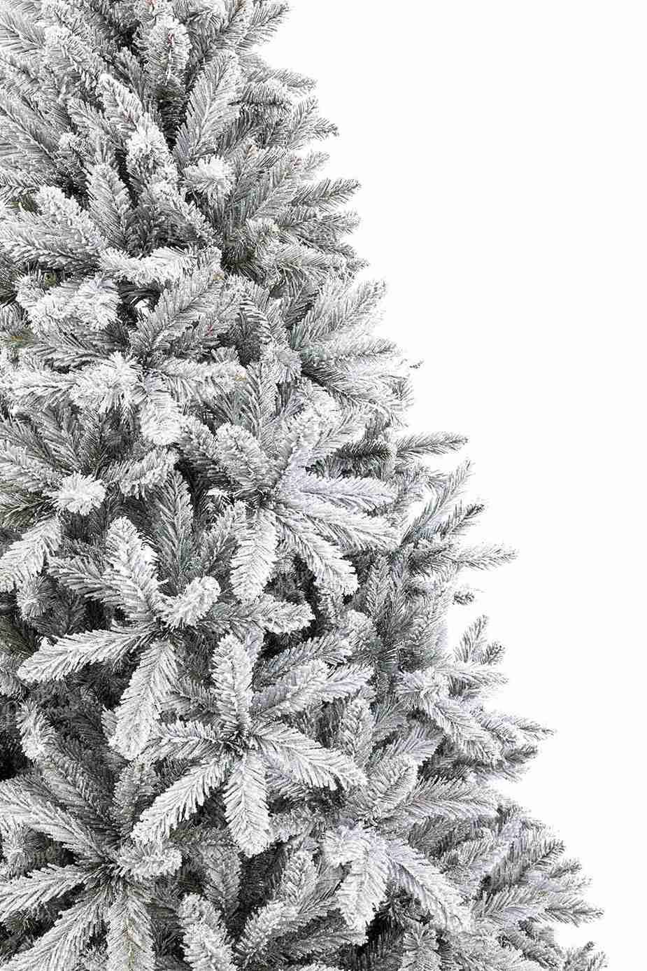 Moderno, zasneženo umetno božično drevo bela smreka ima visokokakovostne smrekove veje v zeleni barvi z debelim nanosom umetnega snega.